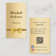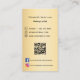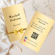 Ein Imitat goldener Hintergrund. Mit einem goldenen Bogen dekoriert. Personalisieren Sie Ihren Namen, Ihren Titel und Ihre Kontaktinformationen und fügen Sie diese hinzu. Fügen Sie Ihre Website url/link zum Qr-Code hinzu. Mit Facebook und Instagram Icons. Schwarzer Text.