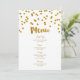 Hochzeitsabendessenmenü im bezaubernden GoldGlitter Confettimuster. (merken Sie bitte Glitter ist nur Druck)