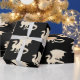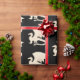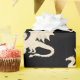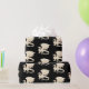 Dieses stilvolle Geschenkpapier bietet ein mythologisches Thema. Ein Bild eines mythischen Golddrachen, in einem Muster texturierter goldener Skalen angeordnet, ist auf einem soliden schwarzen Hintergrund gekachelt.