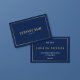 Eine fette Marinekarte, gerahmt durch eine elegante, dünne Doppelgoldfarben-Grenzpaare, zentriert auf Typografie mit großzügigem Abstand für eine leicht lesbare, berufliche Präsentation, ideal für moderne Kleinunternehmen. Das minimale Layout behalte den Firmennamen vorn und klare Kontaktdetails auf der Rückseite, was ein auffälliges und dennoch klassisches Aussehen für kundenorientierte Werbeaktionen bietet. Das goldene Aussehen ist ein Druckeffekt.