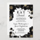 Golden Accented Black Floral Engagement Party Einladung