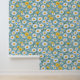 Golden and White Daisies Tanzen auf einem Sky Blue Tapete