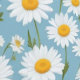 Ein fröhliches blumengeschmücktes Muster mit weißen und gelben Gängen, die auf einem weichen himmelblauen Hintergrund verstreut sind. Die zarten grünen Stiele und Blätter verleihen dem Frühling eine frische, natürliche Touch und sorgen für ein helles und aufregendes Ambiente. Ideal für Stoff, Tapete oder Schreibwaren.