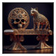Golden Android Cat On Pedestal With Skull Shield Poster