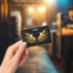 Golden Angel Wings auf schwarzem Hintergrund Ausweis