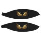 Shiny, goldene Engelsflügel auf dunklem Hintergrund. Goldene Flügel.