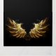 Shiny, goldene Engelsflügel auf dunklem Hintergrund. Goldene Flügel.