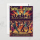 • This energetic digital illustration captures the excitement of a 1940s big band dance night at the Golden Ballroom, with a crowd of people dancing to a live band.