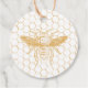 Süße goldene Bienenillustrierung auf einem Wabenmuster. Benutzen Sie die Rückseite, um Text hinzuzufügen oder ihn leer verlassen und später darauf zu schreiben.