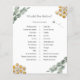 Brautparty Spielkarte mit Aquarellbienen und Eukalyptus. Eine unterhaltsame Art, mit Duschgästen zu interagieren.