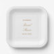 Diese eleganten Teller sind leicht mit dem Namen der Braut und dem Datum des Brautparty zu personalisieren. Sie sind in einem goldenen Beige-Farbton (Imitat Gold / Gold) auf weißem Hintergrund gehalten.
