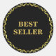 Golden Best Seller Text mit elegantem goldfarbenem Rahmen auf schwarzem Sticker. Text kann personalisiert sein.