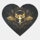 Golden Bird Skull auf schwarzem Hintergrund Herz-Aufkleber