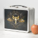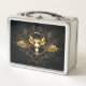 Golden Bird Skull auf schwarzem Hintergrund Metall Brotdose