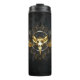 Golden Bird Skull auf schwarzem Hintergrund Thermosbecher