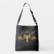 Golden Bird Skull auf schwarzem Hintergrund Tragetaschen Mit Langen Trägern