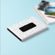 Das Gästebuch ist in Gold, Weiß und Schwarz gehalten. Das Button ist in Goldfolie und Weiß aufgedruckt und mit dem Namen in Goldfolienbriefen auf einem schwarzen Etikett versehen. Auf dem schwarzen Rücken in Goldfolie ist der Text in Goldfolie eingeprägt. Glam Haar Salon Terminbuch oder Gästebuch in einem goldfarbenen und weißen Bobby Button Muster personalisiert mit Ihrem Firmennamen bedruckt mit Goldfolie.
