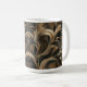 This striking mug features layered golden botanical forms flowing across a deep black background, blending metallic warmth with sculpted elegance. The intricate leaf textures and curved shapes create depth and dimension, giving the design a refined, gallery-inspired feel.