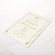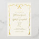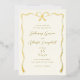 Eine schöne und formelle Hochzeitseinladung mit goldenen Folienelementen eines Schleifens und Bogens. Ideal für eine klassische Hochzeit mit einer modernen und trendigen Drehung. Die Details der Goldfolie schaffen einen hübschen Farbbandrand mit Vintagem Stil.