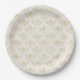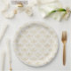 Teller aus Papier mit elegantem, goldfarbenem Hummelmuster in einem sich wiederholenden Muster auf cremefarbenem Hintergrund.