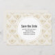 Speichern Sie die Datumskarten mit einem eleganten Muster mit goldfarbenen Hummeln in einem sich wiederholenden Muster auf einem cremefarbenen Hintergrund.