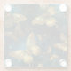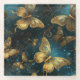 Ein eleganter Untersetzer mit Schmetterlingsmuster in glänzenden goldenen Farbtönen und leuchtender Blues.