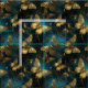Ein elegantes Gewebe mit einem Schmetterlingsmuster in glänzenden goldenen Farbtönen und leuchtender Blues.