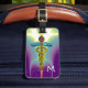 GOLDEN CADUCEUS SYMBOL MONOGRAMM Lila grün Gepäckanhänger