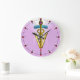 GOLDEN CADUCEUS VETERINÄRSYMBOL / Pink Große Wanduhr
