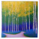 Goldene Canopy - Eine Landschaft im Wald. Eine atemberaubende Mischung aus Gold, Blau und Silber schafft eine traumhafte Interpretation einer Gabel in der Straße. Die lebhaften Farben und die ruhigen Birkenbäume verleihen uns ein Gefühl von Ruhe und Besinnung und erheben das Geheimnis, wohin wir alle führen.