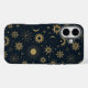 Ein elegantes Himmelsmuster mit goldenen Sonnen, Monden und Sternen vor schwarzem Hintergrund - perfekt für einen luxuriösen, kosmisch inspirierten Handykoffer.