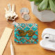 Golden Dragon Papier geschnitten mit texturiertem Goldpapier (Bild gedruckt) auf Mosaikstruktur (Bild gedruckt) als Hintergrund + "Jahr des Drachen". Design auf quadratischem Schlüsselanhänger mit Monogramm, um im Rücken anzupassen. Perfekt für das chinesische und vietnamesische Neujahr des Drachen 2024.