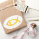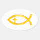 Golden Christlich Fish Symbol mit Crucifix Ovaler Aufkleber
