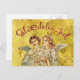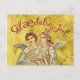 The look of gilded paper printed with a vintage angelic duo singing Merry Christmas greetings in Danish.