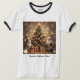 Ein lebendiges Weihnachtsdesign mit goldfarbenem Baum, Weihnachtsmann, Geschenken und Schneeflocken, Set vor gepunktetem Licht für ein festliches, funkelndes Urlaubsatmotiv. "Das Originalbild wurde von Meta AI erstellt. AI generierte Kunstwerke. Lizenziert unter CC BY-SA 4.0."