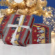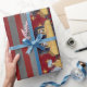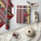 Golden Christmas Train Streifen Burgundy Gray Geschenkpapier
