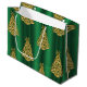 Eine farbenfrohe und dekorative grüne Weihnachtsgeschenktüte mit glitzernden, goldenen Weihnachtsbäumen auf metallisch grünem Hintergrund, um Ihrem Weihnachtsgeschenk in dieser Urlaubssaison eine raffinierte und elegante Touch zu verleihen. (Designerhinweise: Es gibt auch passende Verpackungspapiere, Aufkleber, Geschenkboxen, Geschenketikett, Umschlag , Band und Papiertücher mit diesem Design auf, klicken Sie einfach auf den Link "Verfügbar auf anderen Produkten" unten, um sie zu Karo).