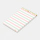 Goldene Konfetti auf pastellrosa, weiß und mint gestreiftem Hintergrund Post-It Notes. Fine text kann personalisiert sein.