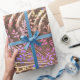 Unser goldenes Curves Neon Florals X'mas Wrapping Paper zeichnet sich durch ein zartes goldenes Kurvenmuster mit Neonfloralen aus.
