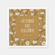 This wedding napkin features watercolor white daisies and green stems scattered across a warm golden mustard background, with a soft center where the couple's names and wedding date appear in clean white lettering. A great fit for a fall outdoor wedding, a wildflower-themed celebration, or any couple going for a warm, earthy boho look.