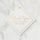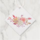 Elegante Hochzeitsgunst Geschenktag in weiß mit Goldfolie individueller Text, auf der Vorderseite gemacht. Die Rückseite ist mit einer hübschen Blume in Korallen und Gold gestaltet. Personalisieren Sie den Text, um zu lesen, was Sie gewollt haben.