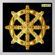 Golden Dharma Wheel Buddhismus und Hinduismus Symbol des Prinzips der kosmischen Ordnung und der Lehre oder Religion des Buddha.
