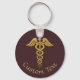 Doppelschlangen-Kadukeus. Gold Farbsymbol Benutzerdefinierte Hintergrundfarbe. Benutzerdefinierter Text auf beiden Seiten.