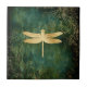 Diese wunderschöne Keramik-Kachel besticht durch eine goldene Libelle auf einem smaragdgrünen, Vintagen Grunge-Hintergrund.