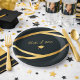 Add a touch of sophistication to your graduation celebration with these Personalized Golden Elegance paper plates. Featuring a sleek black background and graceful gold ribbon accents, this design coordinates perfectly with matching announcements, banners, yard signs, and candy stickers from the Golden Elegance collection.