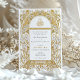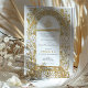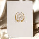 Diese exquisite islamische Hochzeitskarte strahlt Eleganz mit ihrem Jugendstil-inspirierten Design aus. Das Imitat ist in den Farben Gold und Weiß gehalten und bietet eine Touch von Luxus und Eleganz. Die Vorderseite der Einladung zeigt ein kompliziertes Muster goldener Wirbel und weißer Blumen, die einen wunderschön geschriebenen arabischen Bismillah im kalligraphischen Stil umgeben. Die Rückseite der Karte behält die gleiche Farbpalette für Konsistenz bei, mit einem minimalistischen Ansatz, der das Monogramm der Initialen des Paares hervorhebt. Diese Einladung ist ideal für Paare, die traditionelle islamische Werte mit der zeitlosen Schönheit des Jugendstils für ihren Hochzeitstag verbinden möchten.