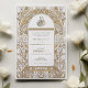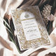 Diese exquisite islamische Hochzeitskarte strahlt Eleganz mit ihrem Jugendstil-inspirierten Design aus. Das Imitat ist in den Farben Gold und Weiß gehalten und bietet eine Touch von Luxus und Eleganz. Die Vorderseite der Einladung zeigt ein kompliziertes Muster goldener Wirbel und weißer Blumen, die einen wunderschön geschriebenen arabischen Bismillah im kalligraphischen Stil umgeben. Die Rückseite der Karte behält die gleiche Farbpalette für Konsistenz bei, mit einem minimalistischen Ansatz, der das Monogramm der Initialen des Paares hervorhebt. Diese Einladung ist ideal für Paare, die traditionelle islamische Werte mit der zeitlosen Schönheit des Jugendstils für ihren Hochzeitstag verbinden möchten.