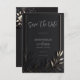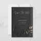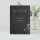 Eine raffinierte Hochzeit Save The Date Card mit einem dunklen Hintergrund mit goldenen Blattdesigns.