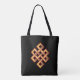 Golden ewiger Knoten auf schwarzen Tote Tag. Der endlose Knoten symbolisiert Weisheit und Mitgefühl in mehreren östlichen Ländern. Der ewige Knoten bedeutet, dass wir alle miteinander verbunden sind.