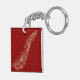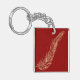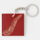 Eine goldene Feder auf einem maronen Hintergrund. Dieses Design wirkt auf diesem Schlüsselanhänger wirklich effektiv